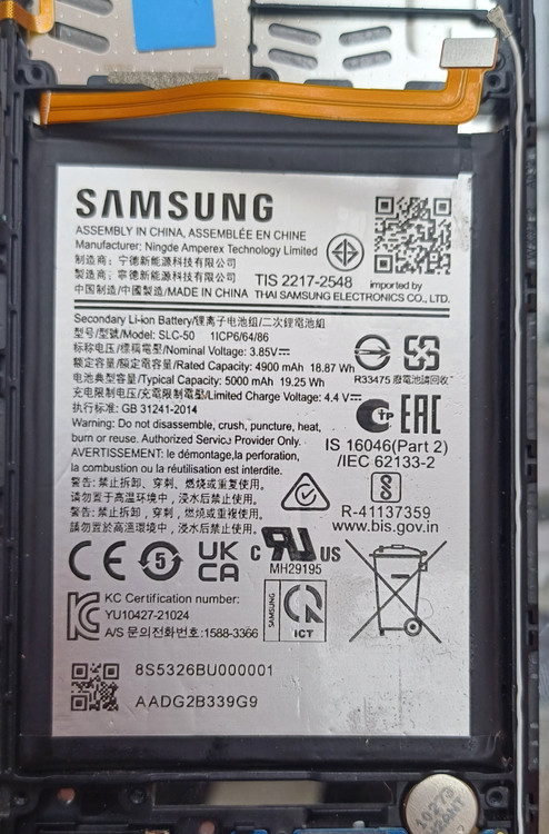 باتری گوشی سامسونگ گلکسی A03 CORE از روی گوشی باز شده و دارای کیفیت اورجینال میباشد.